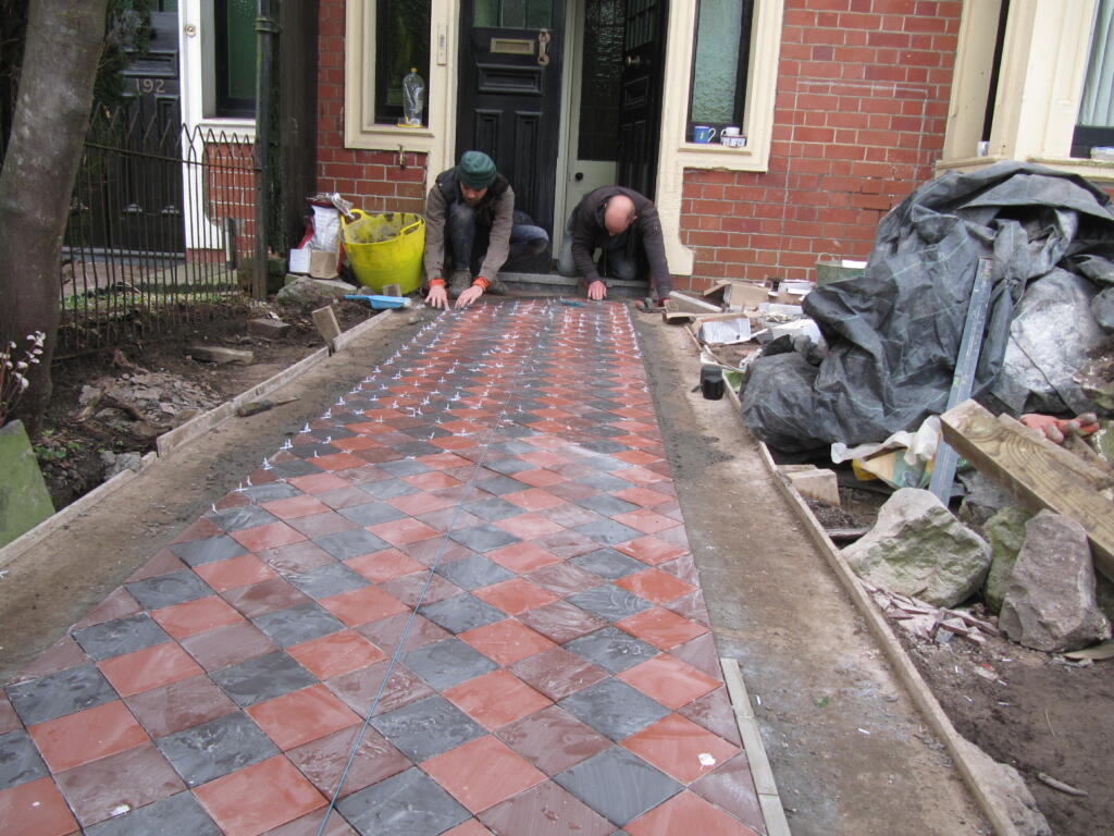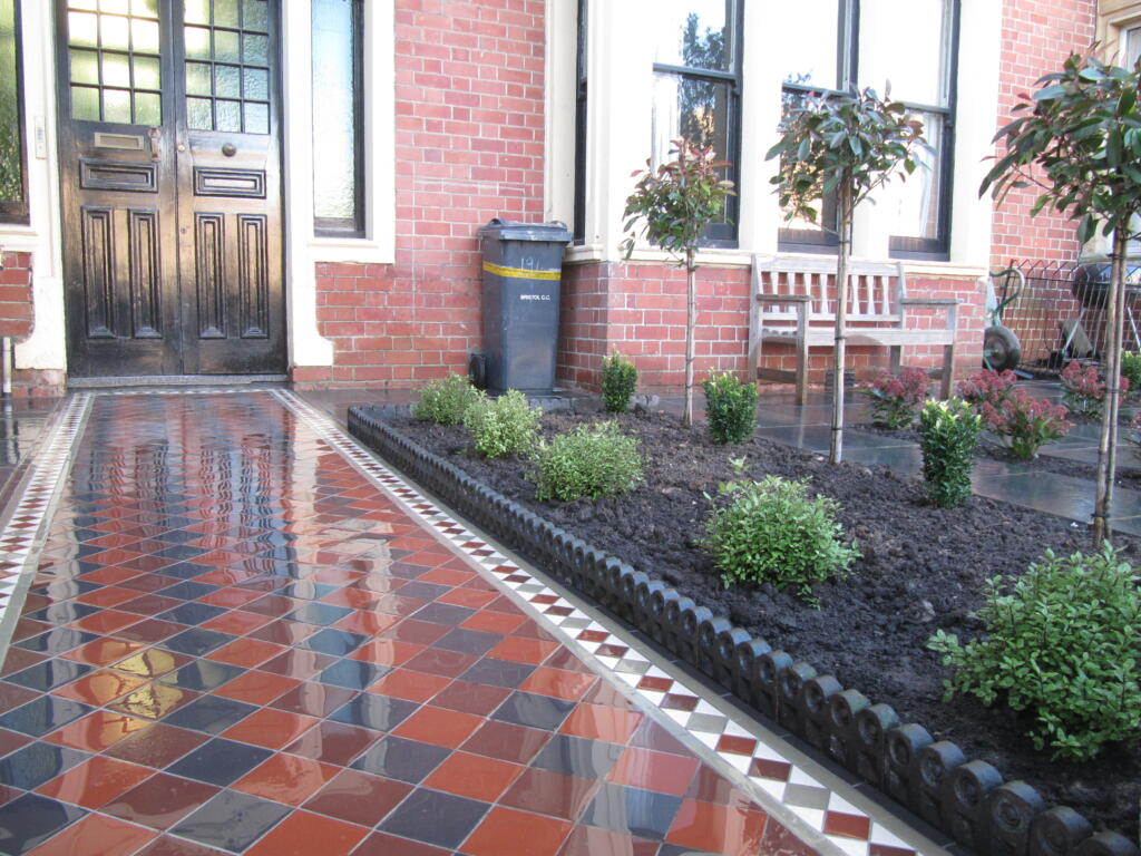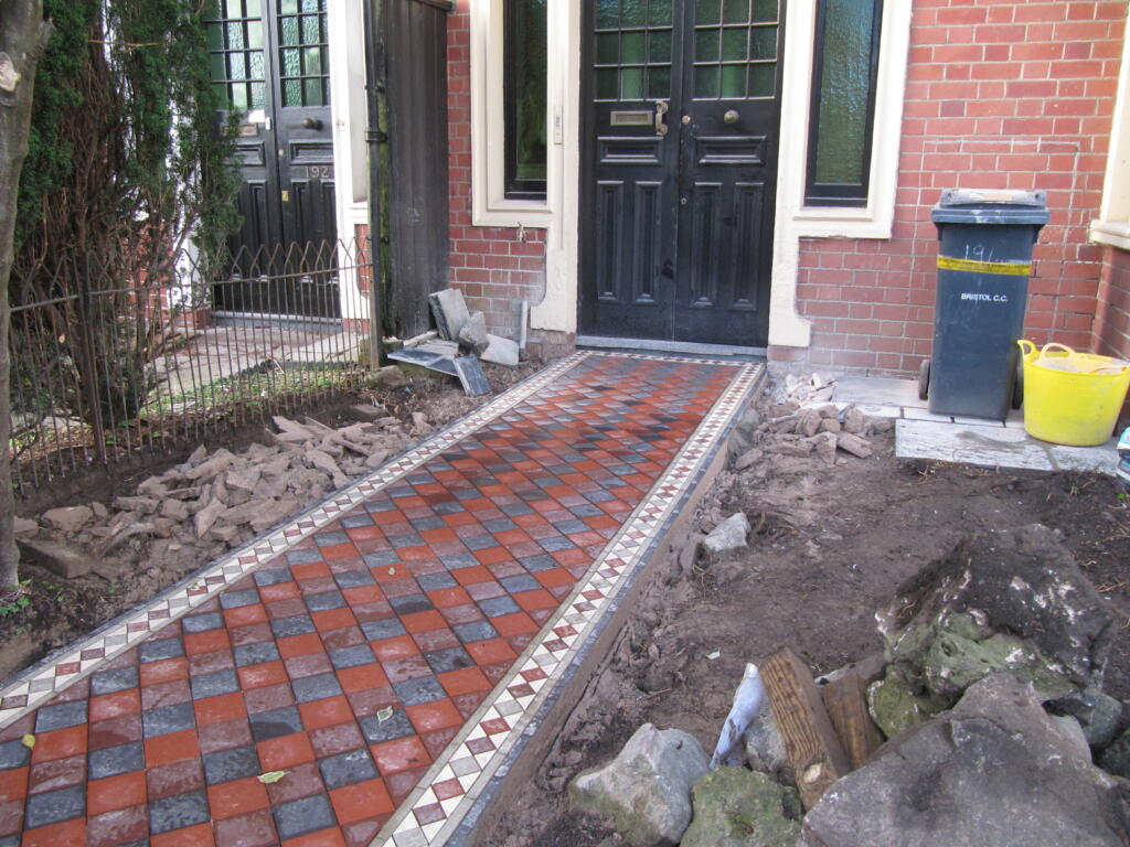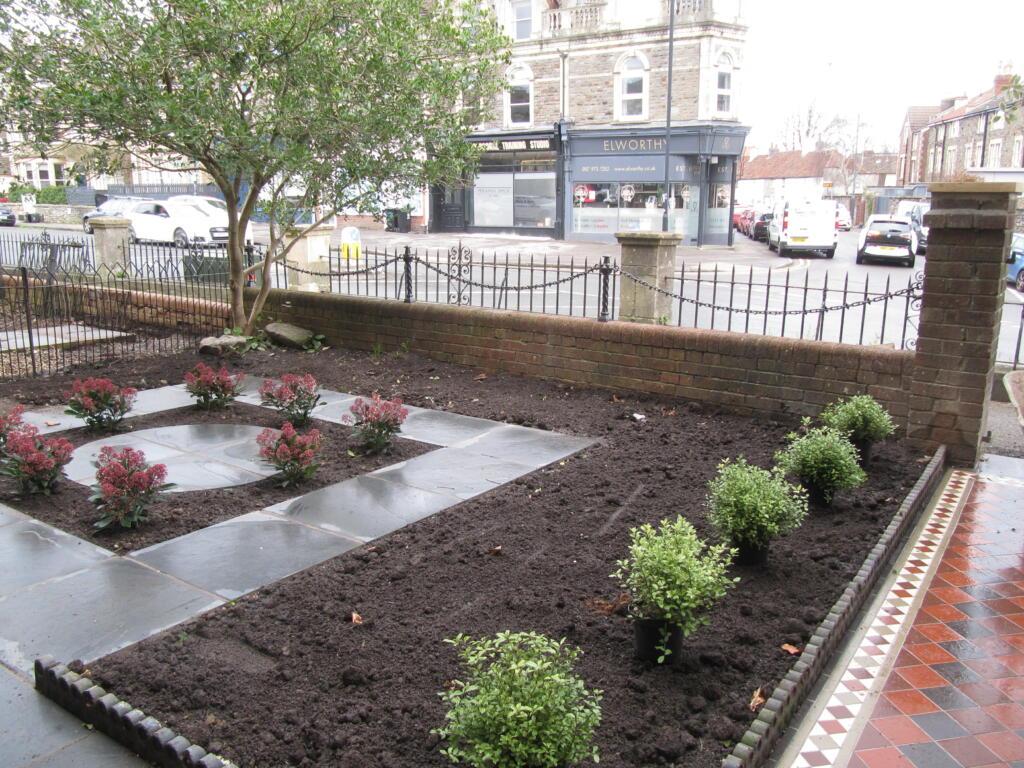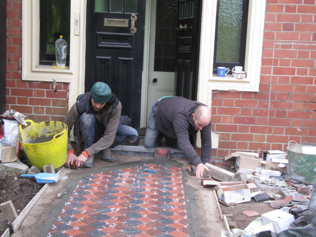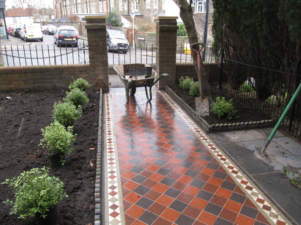 The boys did a beautiful job laying the pathway, with tiles from Bishopston Tiles, on Gloucester Road. Thankfully all the hard landscaping including the pathway were finished before Storm Eunice arrived towards the end of February.